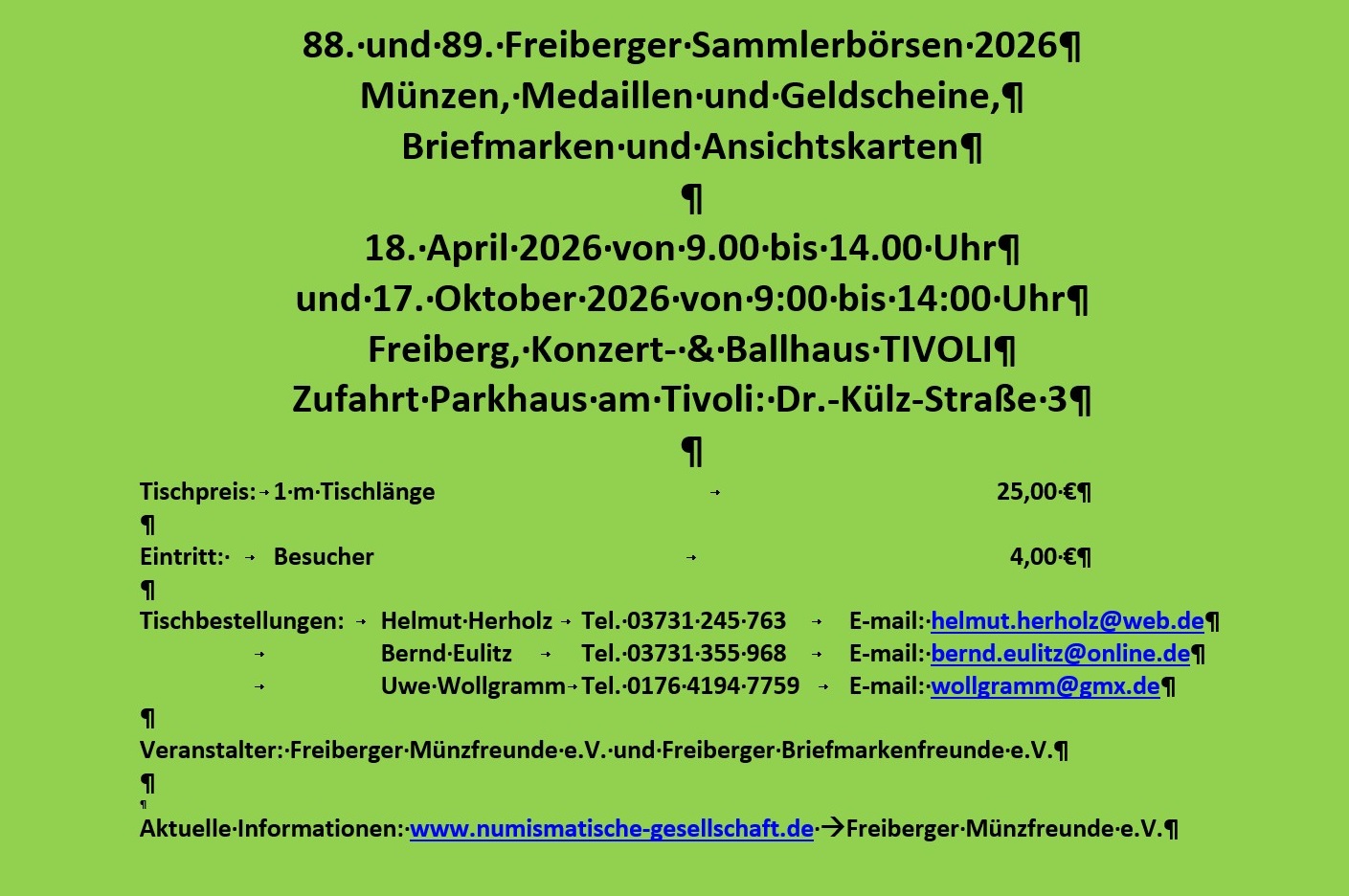 Den Organisatoren der Freiberger Münzfreunde, hier vor allem Herrn Helmut Herholz und Herrn Udo Becker sei noch einmal herzlich Dank gesagt.